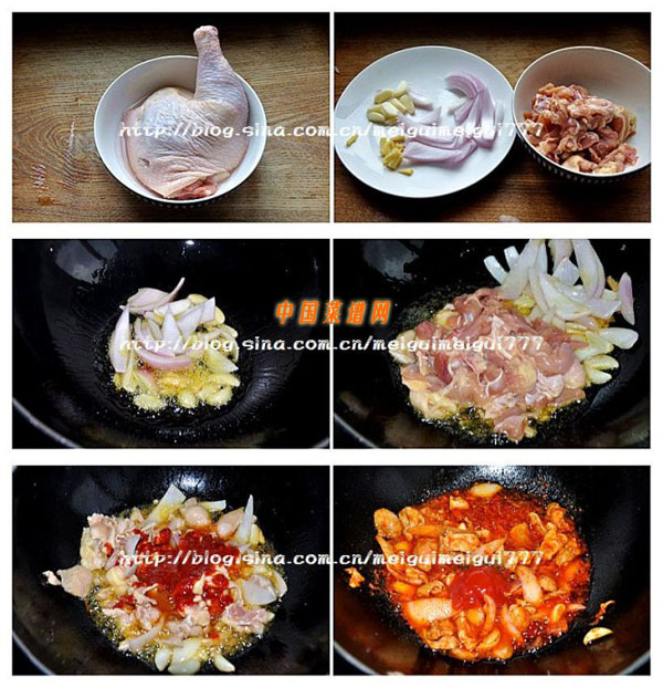 材料:雞腿肉、洋蔥、蒜、生姜、油