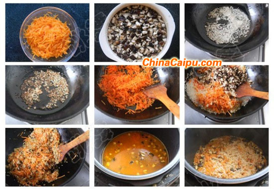 材料:免洗大米 胡蘿卜 干香菇 紫洋蔥