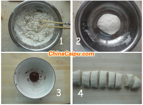 原料:低筋面粉250克,牛奶135克,酵母3克,白糖15克,色拉油5克,可可粉5克,紅豆沙